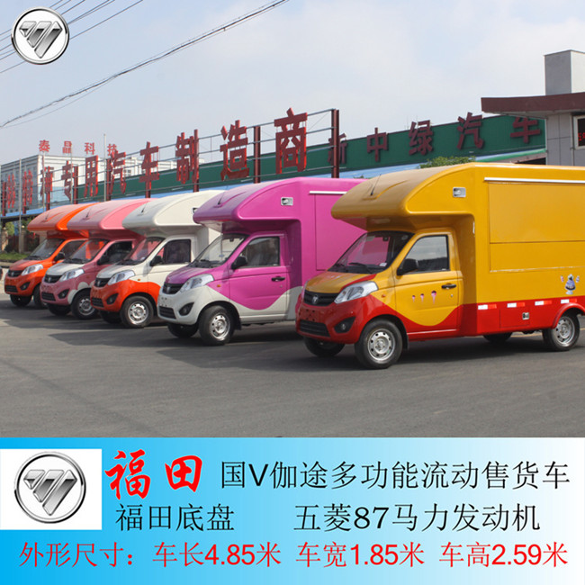 福田國五售貨車標準配置: 福田伽途流動售貨車采用柳州五菱87馬力汽油發(fā)動機(正宗國五),福田原裝底盤,五檔變速箱,車內(nèi)12V時尚照明燈,底盤采用防腐、防滑鋁紋板,車內(nèi)車內(nèi)電源,高音喇叭2個,二側(cè)外翻帶擱物吧臺。整車顏色可以選噴,廂體尺寸(長寬高):2800*1700*1800mm。車體可3面展開,帶高音喇叭可邊走邊宣傳,配有外接電源,方便使用電具,也可在車內(nèi)加裝220V電源發(fā)動機,進行發(fā)電.駕駛室自帶空調(diào)暖風,CD(USB接口)車載音響系統(tǒng),制動系統(tǒng):雙管路真空主力液壓制動,前盤后鼓,駕駛室上部大空間儲物柜,自動充電系統(tǒng),駕駛室集成喇叭聲音控制開關(guān),220V外接電源接口,后箱內(nèi)照明LED燈,140Ah蓄電池,充放電保護開關(guān),上車踏步伸縮梯,兩側(cè)下部設(shè)計折疊翻板,車身顏色多種選則。
