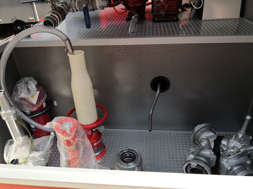 上裝配置:15噸水泡消防車,13噸水罐,材質Q235碳鋼,2噸泡沫罐,材質304不銹鋼。CB10/60上海茸申消防泵,PL48成都威斯特消防炮,其他標配。上裝詳細圖片如下 :