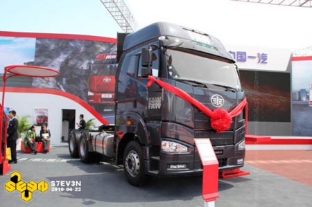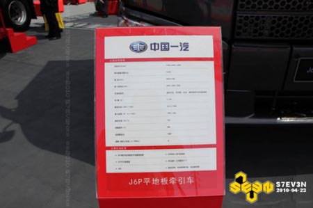 在2010年北京車(chē)展上,解放又展出了一輛平地板的J6,配置與第1000萬(wàn)輛下線(xiàn)儀式上的那輛相同。只是涂裝顏色不同。但這次又被命名為“J6P平地板牽引車(chē)”。