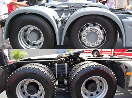 當(dāng)年的J6HC采用了6×2的驅(qū)動(dòng)形式,第二橋?yàn)榭商嵘慕Y(jié)構(gòu),驅(qū)動(dòng)橋則采用空氣懸掛。目前的J6H采用6×4的驅(qū)動(dòng)形式。當(dāng)然,J6H應(yīng)該是一個(gè)系列,會(huì)有各種配置的產(chǎn)品。不過(guò)取消了驅(qū)動(dòng)橋的輪罩有些遺憾。