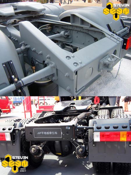 解放J6HC的車(chē)架結(jié)構(gòu)似乎是來(lái)源于三菱FUSO。而驅(qū)動(dòng)橋則是來(lái)源于UD(當(dāng)年的日產(chǎn)柴)的485橋。如今的J6H仍然匹配485橋,車(chē)架似乎改進(jìn)了。