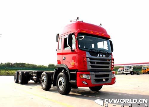 與輕量化牽引車相似,江淮重卡推出的中體車同樣是在江淮重卡第四代全新車身的基礎上開發(fā)而成。如果說,江淮重卡今明兩年在牽引車上主推的是輕量化,那么此次推出的中體車便是主打載貨車。而這“打頭陣”的車型便是江淮重卡的8×4載貨車。