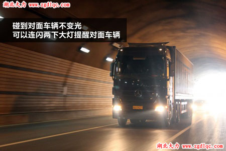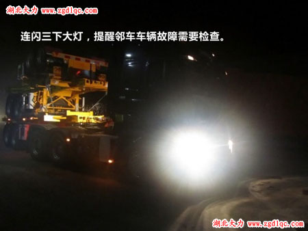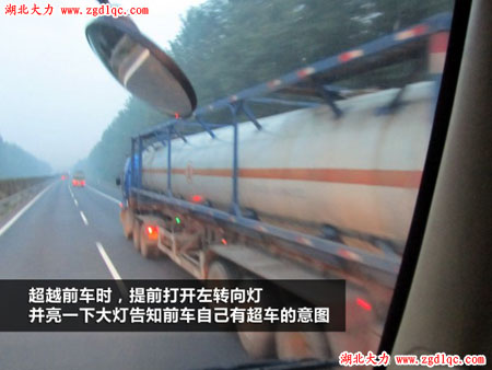 說(shuō)明:卡車在復(fù)雜路段的速度一般都比較慢,經(jīng)常會(huì)碰到小車超車的情況。如果前方路面較為狹窄,或者對(duì)面來(lái)車,超車比較危險(xiǎn),可以開啟左轉(zhuǎn)向后車表示:現(xiàn)在不可以超車;等到路面較為寬敞,有超車條件時(shí),開啟右轉(zhuǎn)向燈并減速,示意后車超車。