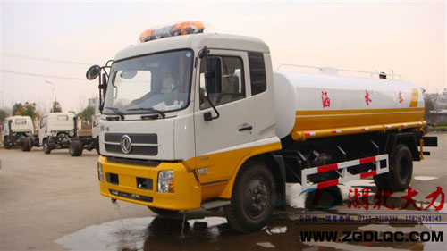 湖北大力汽車公司生產(chǎn)的東風(fēng)天錦灑水車垂直吸程可達(dá)到7米以上,灑水寬度≧14-16米,可噴射28-30米以上,揚(yáng)程90米。引水時(shí)間小于5min,流量90m3/h。罐體可以選橢圓形或方形,倉(cāng)內(nèi)1.5米一道隔板,起到防波防蕩的效果。用戶還可以選擇對(duì)罐體進(jìn)行專業(yè)的防腐防銹處理,另外還配備多方位進(jìn)出水接頭、氣動(dòng)閥、警燈等先進(jìn)設(shè)施,操作簡(jiǎn)單、使用方便。