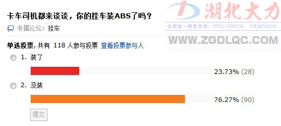 ABS的作用除了大家熟知的安全,其實對經(jīng)濟效益的提升也有不少幫助。首先來看看現(xiàn)在ABS的使用情況,我們在論壇做了一個簡單的調(diào)查: