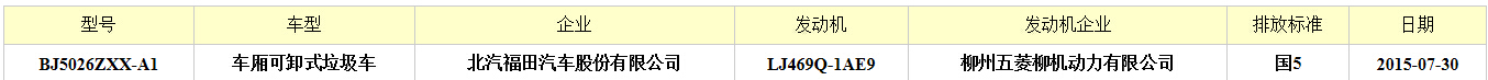 福田國(guó)五勾臂垃圾車  底盤型號(hào):BJ1036V5JV5-D1 額定質(zhì)量:995