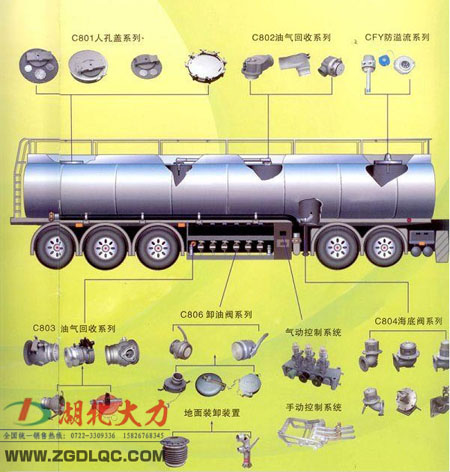 這個(gè)圖片可以很方便的看出來,油罐車可以分倉(cāng)的,每一個(gè)倉(cāng)都需要一鋁合金罐口(也稱為人孔),可以帶防溢漏探頭,海底閥,卸油接頭,海底閥,又稱緊急切斷閥,安裝于罐體底部,進(jìn)行下裝加油時(shí)使用,操作簡(jiǎn)便、節(jié)時(shí)、安全環(huán)保。
