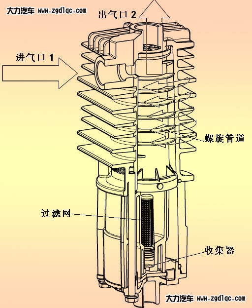 油水分離器,也稱冷凝器,有的主機(jī)廠叫“壓縮空氣油水分離器”。油水分離器是保證制動(dòng)系統(tǒng)壓縮空氣清潔的第一道防線,在極端的使用工況下,系統(tǒng)中的油水混合物及雜質(zhì)會(huì)嚴(yán)重影響制動(dòng)系統(tǒng)的性能和零部件的壽命。油水分離器一般安裝在空氣壓縮機(jī)和空氣干燥器之間,在其長(zhǎng)期的使用過程中,只需要很少的維護(hù)。